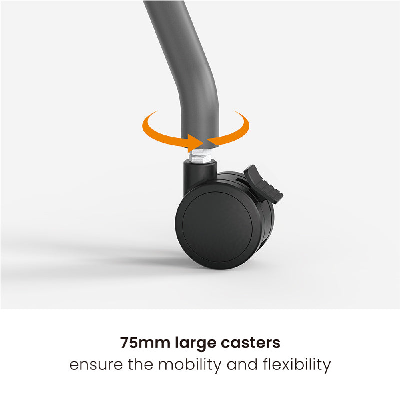 • 75mm large casters ensure mobility and flexibility